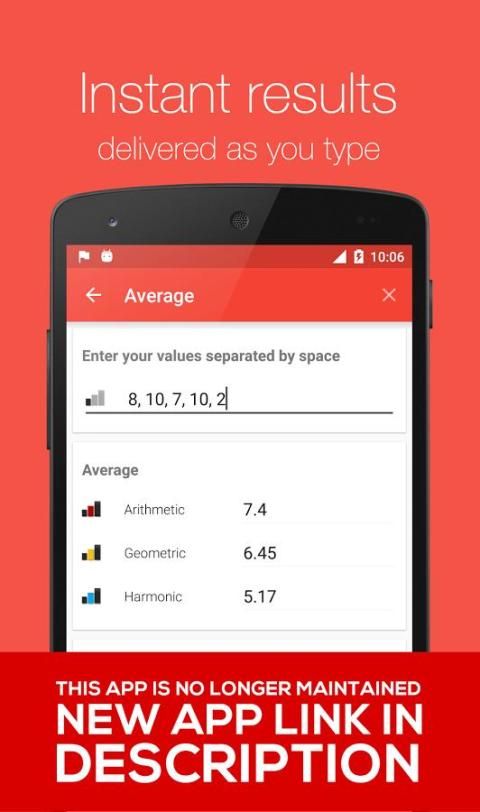 إنها آلة حاسبة كبيرة للمدرسة والواجبات المنزلية، ولكن ليس فقط. إذا كنت عالما، الطالب والمعلم. البناء، بارع، مقاول، وما إلى ذلك .. وكنت بحاجة إلى أداة الكل في واحد لجهازك، تعطي هذه المحاولة. وأنك لن تكون بخيبة أمل.