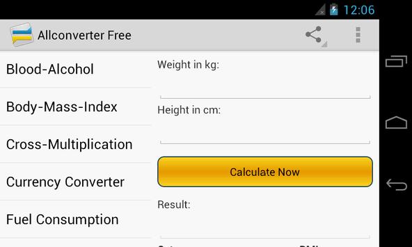 All Converter has all converters: Unit-Converter (more than 300 units), Currency-Converter (always up-to-date, offline), Annuity-Calculator, Blood-Alcohol-Calculator, Rule of three-Calculator, Costs for Gas-Calculator and many many more...