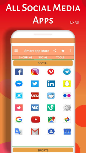 يمكنك تصفح أكثر من 500 وسائل التواصل الاجتماعي والشبكات الاجتماعية لمحبي التسويق على وسائل التواصل الاجتماعي، وإرسال الرسائل عبر برقية وتويتر كذلك عرض الإعلانات من موقع eBay الشهير وجميع التطبيقات إرسال رسائل SMS.