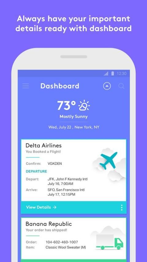 * Cards: Access important travel and shopping information in an easy-to-read format without opening your email.