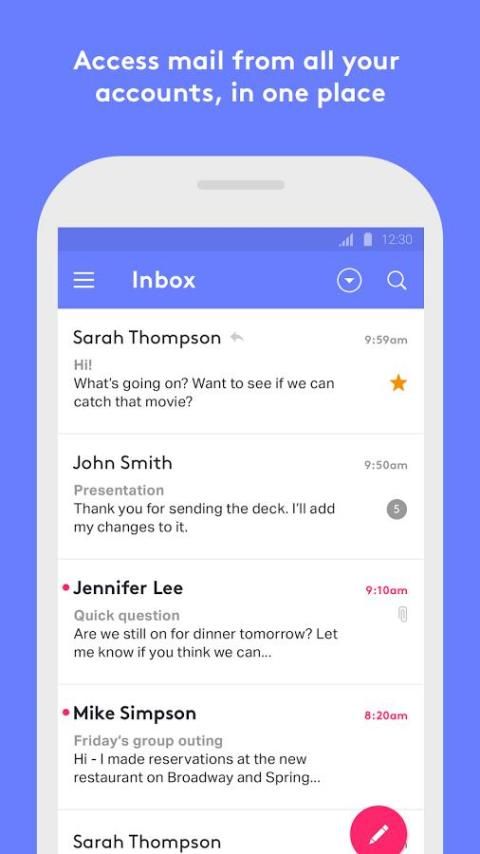 * Aggregation: All your emails from all your accounts are in one place. View them together or individually.