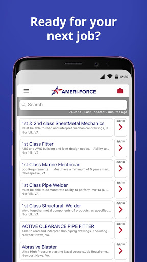 ابق على اتصال مع تطبيق Ameri-Force.البحث، عرض، وتطبيق على الوظائف أثناء التنقل.تلقي تنبيهات الوظيفة عندما تطابق الوظائف كلماتك الرئيسية.يبقيك تطبيق Ameri-Force في الحلقة أينما كنت.