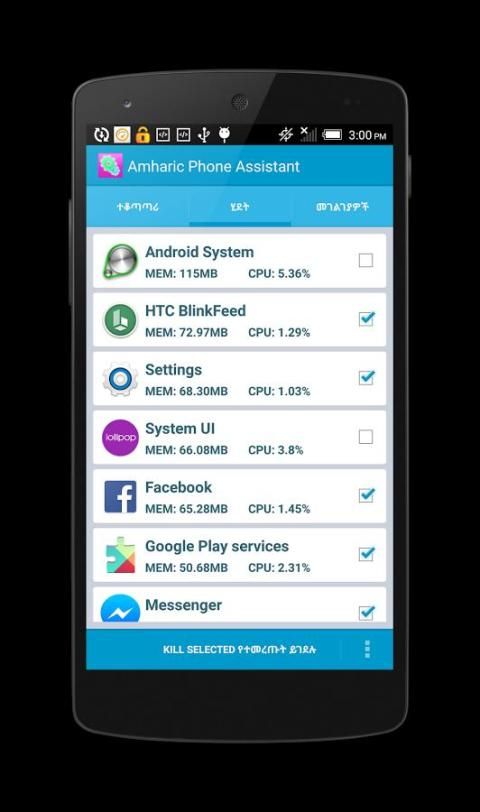 الأمهرية مساعد الهاتف (الاثيوبي) በአማርኛ የስልክ ረዳትዎ هو أداة رائعة أداة النظام التي تعمل على تحسين الأداء في androids الخاص بك. نحن نقدم طريقة بسيطة وأنيقة لمساعدة في مراقبة ومتابعة الروبوت الهاتف الخاص بك باللغة الأمهرية، لزيادة أداء الهواتف الخاصة بك وينقذ حياة البطارية. سريعة وسهلة الاستخدام على ما يبدو التي تعزز نظام التشغيل النظام والذاكرة. كما أن لديها مدير العملية التي تتيح لك نظيفة تطبيقات نظام التشغيل. وشملت مع النسخ الاحتياطي واستعادة الميزة التي تساعدك على تطبيقات النسخ الاحتياطي في ملف APK واستعادة عند الحاجة إليها. ميزة منظف نظام ينظف ذاكرة التخزين المؤقت، صورة مصغرة ذاكرة التخزين المؤقت، تسجيل ملف، مجلد فارغ، متصفح التاريخ، الحافظة، تاريخ السوق، و Gmail التاريخ، خريطة جوجل التاريخ.