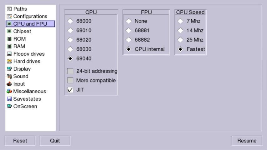2) then launch the emulation and press Back button to invoke Settings. Click Input and disable Mousehack and click reset button to restart the emulation. Please note the sound is not working correctly in Picasso96 modes yet.