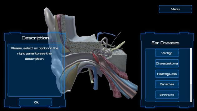 This application allows a deep look of the human ear in 3 menus: