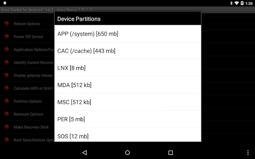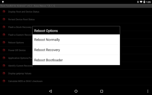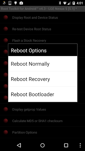 * reboot options (normal, recovery, bootloader)