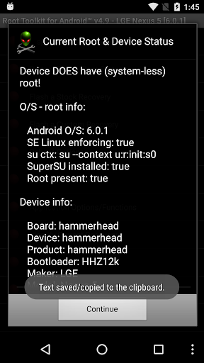* save (protect) / restore root function; for 4.2 and earlier devices with ext2/3/4 /system partitons; for 4.3 devices, I've implemented Pau Oliva's 4.3 keeproot.sh functionality; saving root for 5.0 has not yet been