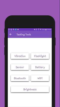 Using testing menu you can analyze and test your device's hardware, sensors and components, to make sure everything is operating correctly.