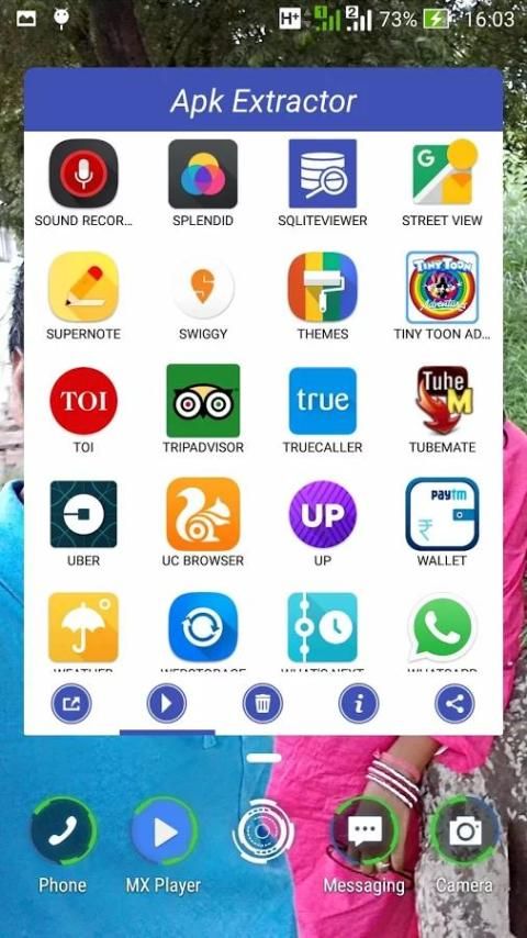 سوف APK النازع مقتطفات / حصة / الاحتياطية APK من كل التطبيقات التي يتم تثبيتها في الجهاز، وتظهر أيضا في App النظام