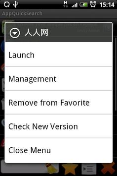 Action: launch, management (Kill process, clear cache/data, uninstall), set as favorite, check new version.