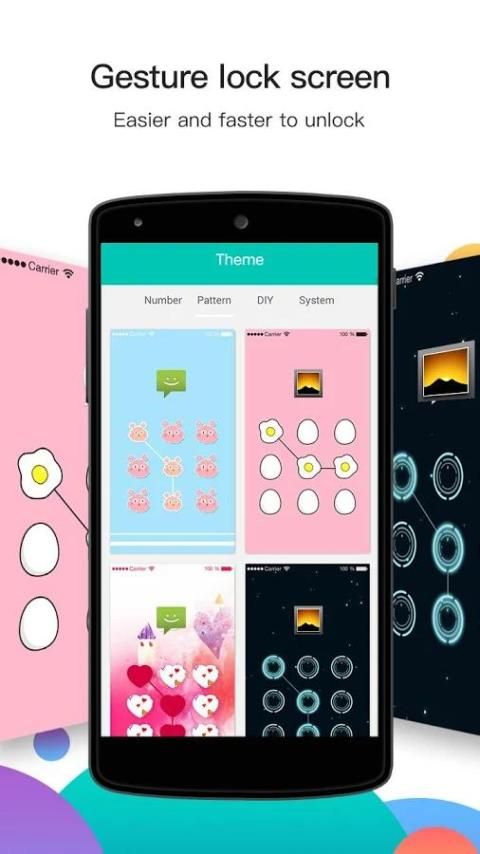لا يمكنك فقط استخدام خزانة DIY لديي قفل الشاشة، ولكن أيضا اختيار PIN أو قفل نمط الموضوعات. PIN وقفل نمط دينا أنواع كثيرة من المواضيع، وخصوصا على غرار برنامج تطبيق السلام، الذي هو موضوع الأكثر شعبية في هذا العام.