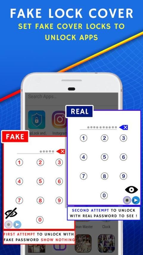 - Applock يدعم PIN، نمط، بصمات الأصابع.