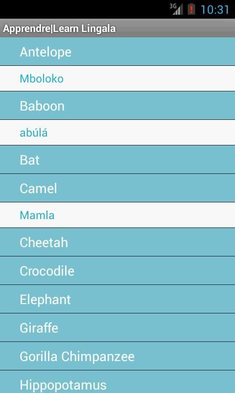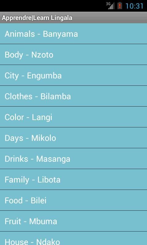 هذا التطبيق هو لمساعدة غير الناطقين اللينجالا لمعرفة اللينجالا من خلال مفردات والمحادثات. توصياتكم هي موضع ترحيب.