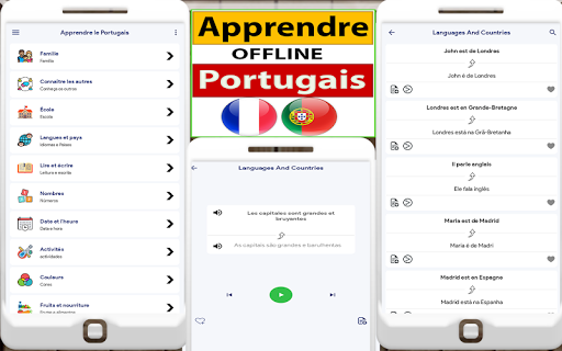 Vocabulaire Portugais Gratuit est Gratuit pour tous les utilisateurs. Vous pouvez apprendre des phrases et des phrases complexes en un rien de temps. Verbe Portugais Français l'application est utile pour les hommes d'affaires et les voyageurs d'apprendre les rudiments de la langue étrangère. Les utilisateurs peuvent apprendre la langue portugaise et sa meilleure façon d'apprendre les alphabets portugais et la grammaire pour les débutants. Prononciation Portugais est également utile pour apprendre les verbes et le vocabulaire. Il fonctionne efficacement en ligne ainsi que hors ligne.