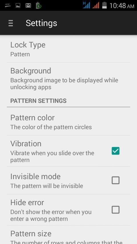 تطبيقات الخزانة يمكن قفل التطبيق الفردي مع قفل نمط أو دبوس.