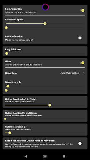 المخاوف المحترقة: قد تعاني بعض شاشات عرض أندرويد من حرق خفيف في حالة عرض عنصر واحد على الشاشة لفترة طويلة للغاية من الوقت. يمكنك تعطيل التأثير الافتراضي لإظهار الحلقة فقط أثناء تشغيل مؤشر. ملاحظة: تأتي أجهزة Samsung Galaxy مع حماية حرق تحريك البكسلات قليلا في كل مرة.
