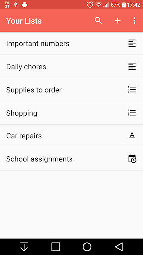 This app is designed to be as generic as possible, so the possible uses for each list type are endless!