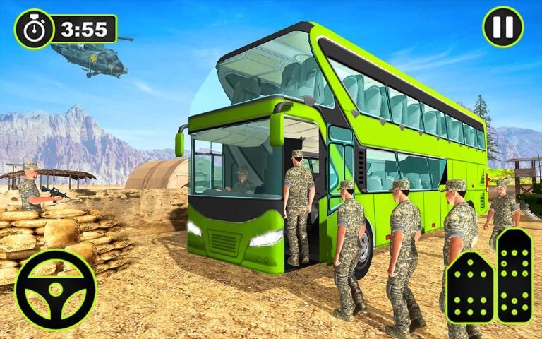 Drive through sensational atmosphere of army transport driving games to enlist your name in army list as futuristic army soldier transporter of new army bus crash games. Try your level best to go to final levels of present offroad heavy bus transporter game by escorting your soldiers to desired base of real army bus game 2019. Take the time into your special consideration by taking your decisive turns of multi army bus driving games quickly. Make it sure that you are on right track of new multistory bus games 2019 by meeting all requirements of extreme army bus games 2019 like a professional army bus driver.