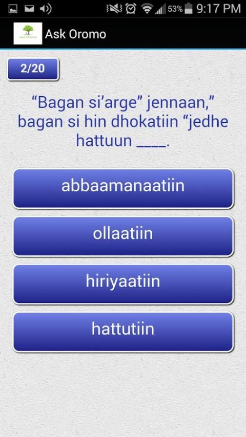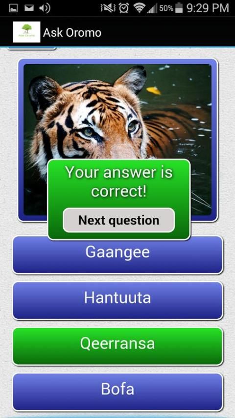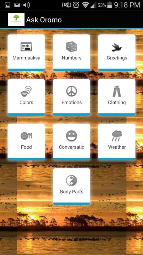 Ask Oromo is an app containing more than 300 proverbs/Mammaaksa/, vocabularies and dialogues for both fluent or starter Afaan Oromoo speakers. This app help children to learn this language easily by exercising quizzes and pictures. Download it now and enjoy it.