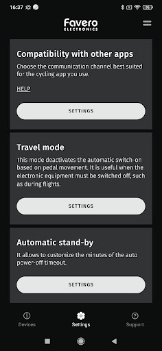 هناك حاجة إلى تطبيق Favero Assioma لتنشيط الدواسات والوصول إلى وظائف المفاتيح مثل: