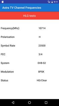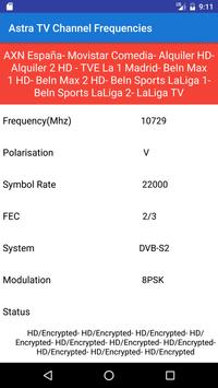 • معلومات تفصيلية لكل قناة (التردد - الاستقطاب - SR -FEC -Modulation -System - الحالة قناة (SD أو HD / مشفرة أو واضح))