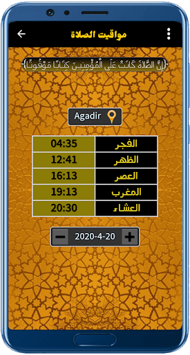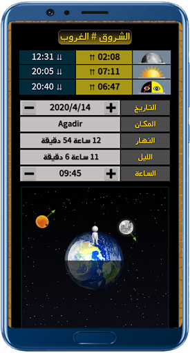 كما يساعد ايضا على معرفة اوقات ومواعيد الصلوات في منطقتك, وايضا معرفة التاريخ الهجري الإسلامي, ومعطيات عن الشهر القمري, كحالة القمر والشمس, وموقعهما في السماء, اضافة الى اوقات الشروق و الغروب.