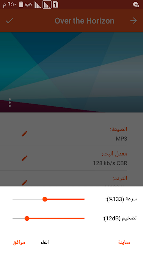 ● تغيير إعدادات الأغنية مثل معدل البت و التردد و القناة.