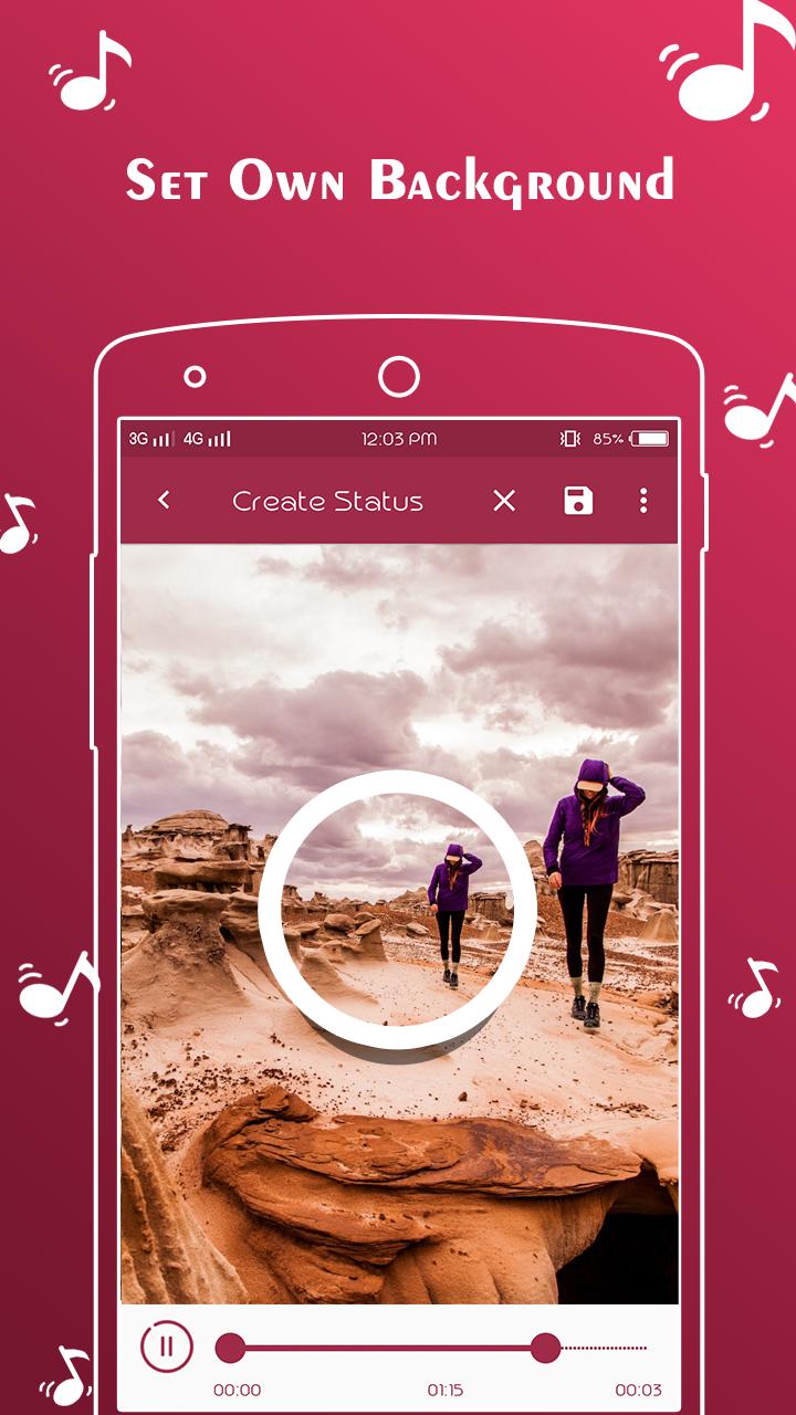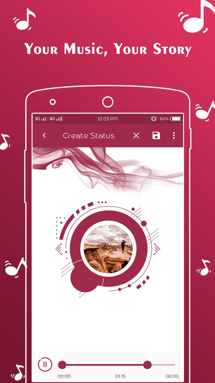 Audio Status Maker - Status Art is an application which lets you select your song/audio or record your message and convert it into a story.