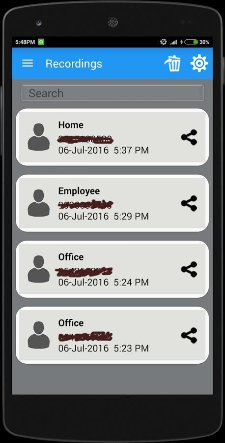 > في هذا التطبيق، يمكنك حذف كافة العناصر المسجلة في وقت واحد، السيارات تسجيل المكالمات في نهاية المطاف يعطي لك أسهل طريقة لتسجيل جميع المكالمات الهاتفية الخاصة بك وإدارتها. البحث عن التسجيلات عن طريق رقم الهاتف. يوفر التطبيق الإعدادات الافتراضية للتسجيل التلقائي.