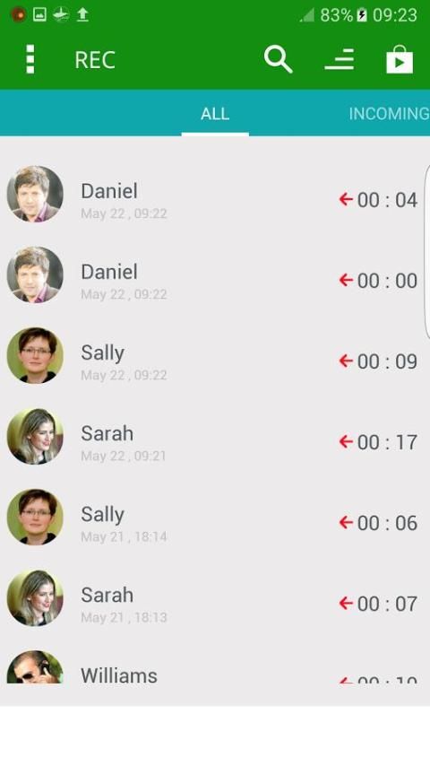 - Sort records (By date, By name subscriber, By phone number, By duration, By file size)