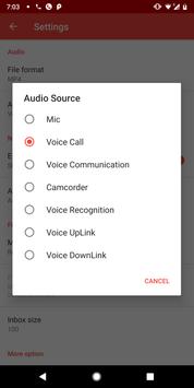 - Automatic/Voice call/Native/Native plus/Media recorder/Microphone