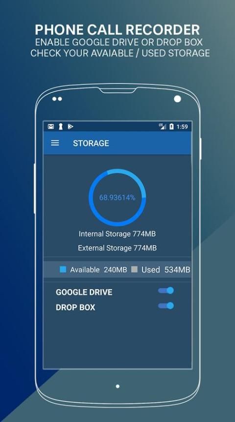 التكامل مع جوجل محرك ودروببوإكس يسمح المكالمات ليتم حفظها ومزامنتها إلى سحابة كذلك.