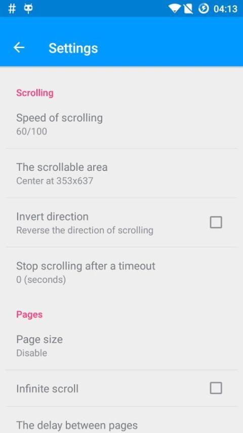 + Added scroll timeout to per app settings