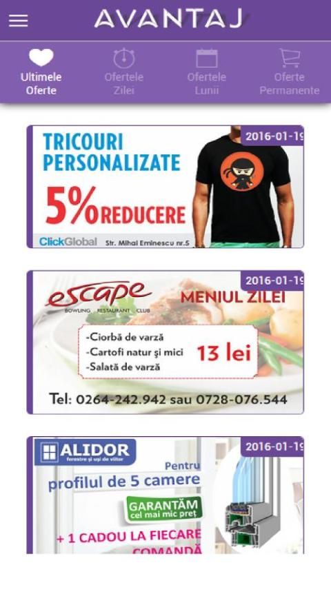 Reduceri, promotii, vouchere din orasul Gherla. Aplicatia AVANTAJ este un produs creat si administrat de agentia de publicitate ClickGlobal.ro. Acest produs inovativ este unic si este menit sa ofere tuturor celor implicati avantaje considerabile.