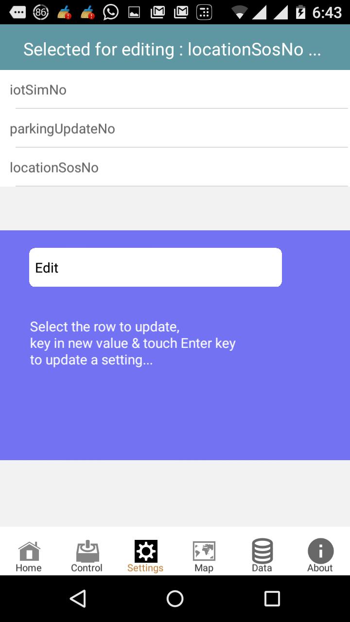 (1) Go to Settings, enter a mobile no. for the second setting i.e., parkingUpdateNo, tap enter/Done to Save