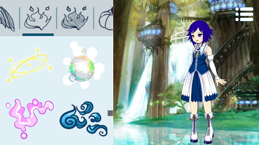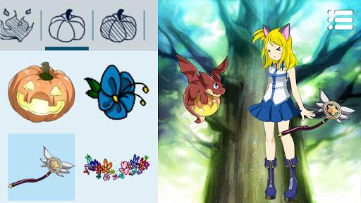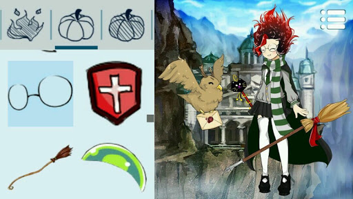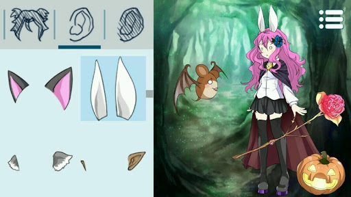 منشئ الشخصية يتيح لك تجربة الكثير من الأحمال المختلفة ازياء واكسسوارات: القبعات الساحرة، فساتين معجزة، القطط السوداء، القرع الهالوين، الصولجانات السحرية ... (إنها لعبة لباس أنيمي حقيقي!)