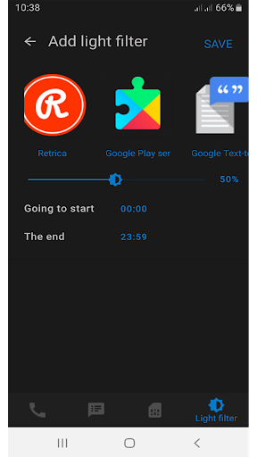 • Add any application to the blue light filter and the ability to specify the time the blue light filter is going to start and end with the chosen program ( example : the blue light filter begins when user open youtube and it end when user close the youtube ) .
