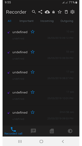 • Categorize recorded calls according to all calls , incoming calls , outgoing calls , important calls .