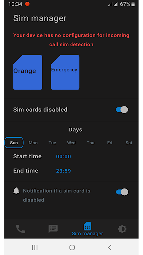• Schedule the time the chosen sim card is going to be enabled or disabled .