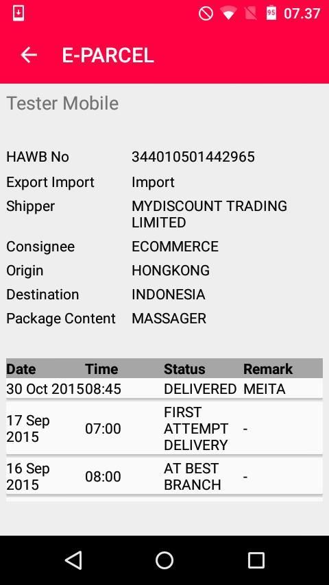 تطبيقات الهاتف المتحرك الداخلية تستخدم لموظف BeSTranspor. لديها العديد من الميزات الرئيسية لدعم أنشطة BeSTranpor، مثل معلومات عن حالة من HAWB (بوليصة الشحن الجوي)، BL، الحجز والنقل بالشاحنات ويمكن تحديث الحالة وملاحظة. لديها نظام الإخطار أن أحيطكم علما بأن أية بيانات يتم تحديثها الوضع.