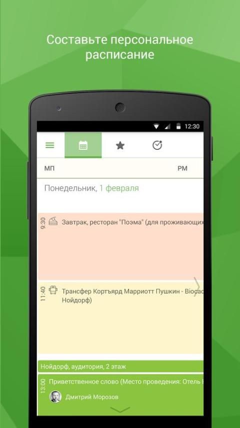 - составить собственную программу и получать оповещения о начале избранных докладов.
