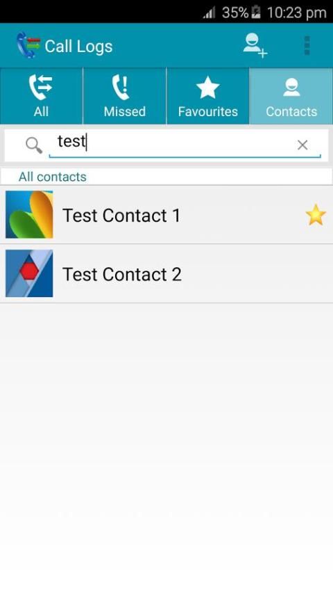 - شريط البحث في علامة التبويب اتصالات يسمح لبحث الاتصالات بالاسم.