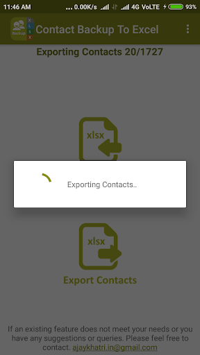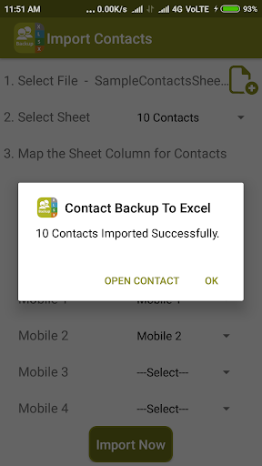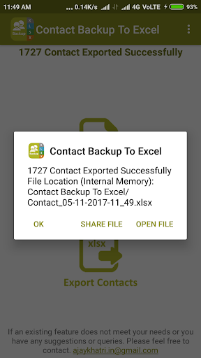 Excel File تم إنشاؤه في اسم مجلد ذاكرة هاتفك "جهات اتصال النسخ الاحتياطي إلى Excel".
