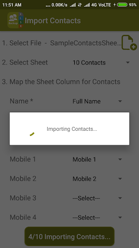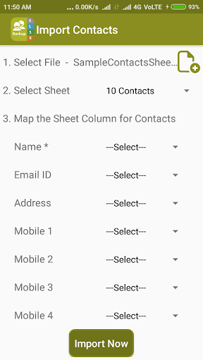 4. يمكنك تعيين رأس عمود ورقة Excel إلى جهات اتصال الحقول. (لا حاجة إلى المدى الخلفي ورقة Excel الخاصة بك للاستيراد)