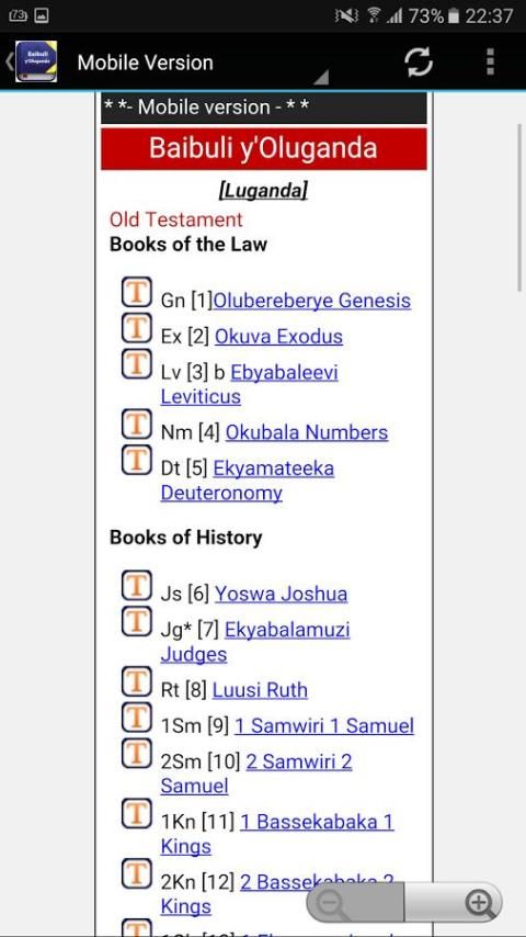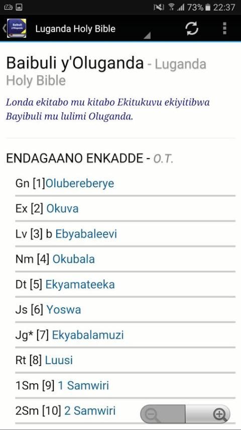 هذا التطبيق يوفر لك Baibuli y'Oluganda المعروف أيضا باسم وغاندا الكتاب المقدس. كلغة جاندا أو وغاندا هو عضو في فرع البانتو لغات النيجر والكونغو. نقدم لكم النسخة الصوتية والنسخة المحمولة من وغاندا الكتاب المقدس. كما يمكنك قراءة النص الكامل للBaibuli y'Oluganda بما في ذلك العهد القديم والعهد الجديد.