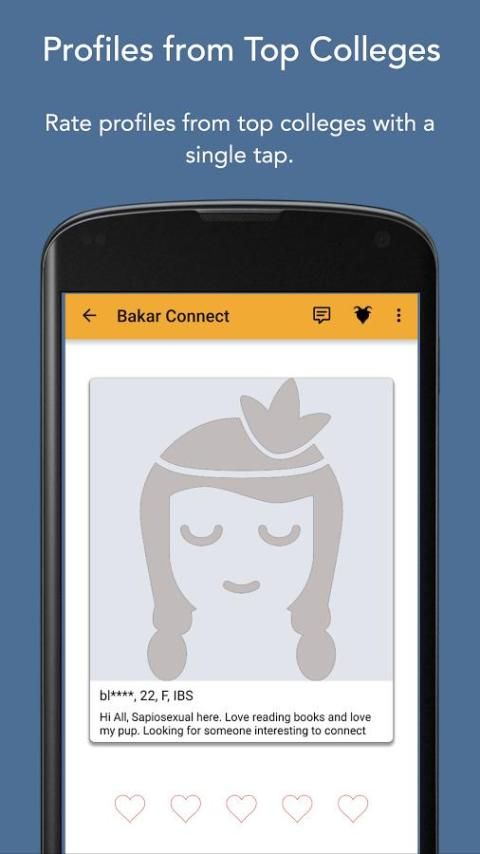 بكر دردشة تصلك مع طلاب الجامعات قريب. في التعارف عن طريق ميزة مجهولة مباريات لك للمتعة، والقيل والقال والحب. أكثر أمانا من صوفان، TrulyMadly. العثور على أصدقاء، أعترف وأكثر من ذلك بكثير فقط مع بكر الاتصال.