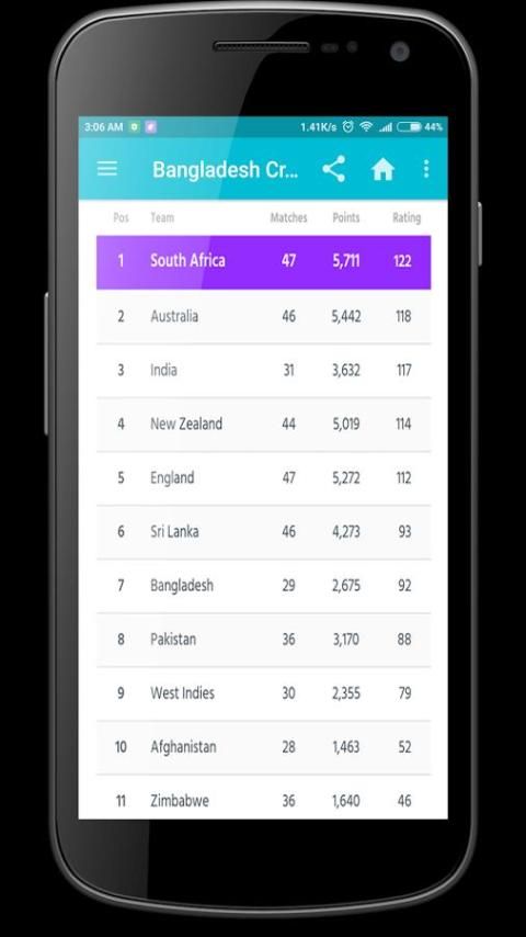 - بنغلاديش الكريكيت الترتيب