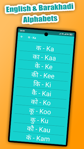How to use? Select any alphabet, and then you can see the barakhadi hindi and english.