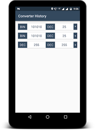 هو تطبيق مفيد للقيام بتحويل الأساس وإجراء عملية الرياضيات الأساسية. إنه يعمل على ثنائي (بن)، ثماني (أكتوبر)، عشري (ديسمبر)، قيم سداسية عشرية (عرافة). قاعدة 2،8،10، و 16. يخزن التطبيق تاريخ حسابات التحويلات التي تم إحالة سهلة.