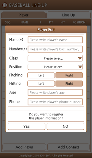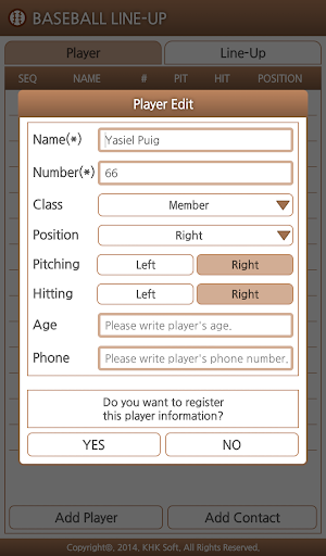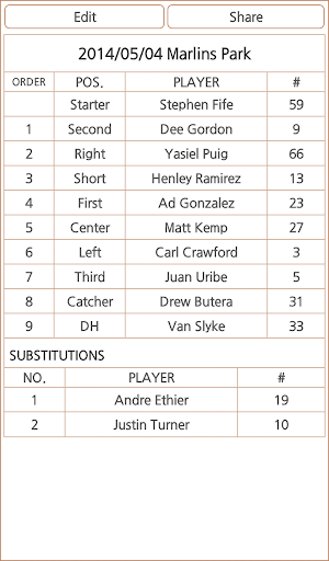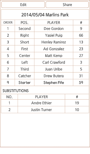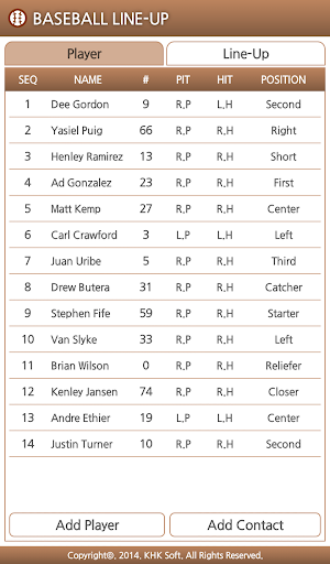 Let you manage your own baseball team! You can add contacts from the player. After registration lineup, team members can share directly. - DH system